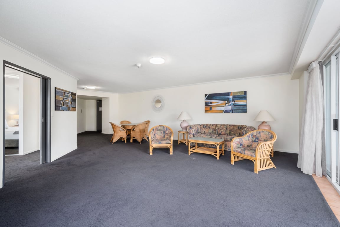 Planning a family getaway? Sovereign on the Gold Coast's Family Suites provide an affordable and spacious option, ideal for two adults and two children. Enjoy the privacy of a separate bedroom for parents and a comfortable layout that suits everyone. The modern living area includes a lounge, dining table, and a convenient kitchenette with plates, glassware, and a sink (note: no cooking facilities are available). Each suite is equipped with a queen bed and two single beds, along with a private balcony offering stunning views of the Gold Coast Hinterland, hotel complex and pool, or the Surfers Paradise skyline. Additional amenities include free high-speed WiFi, Digital TV, air-conditioning, and bathroom essentials, ensuring a comfortable and enjoyable stay for the whole family.